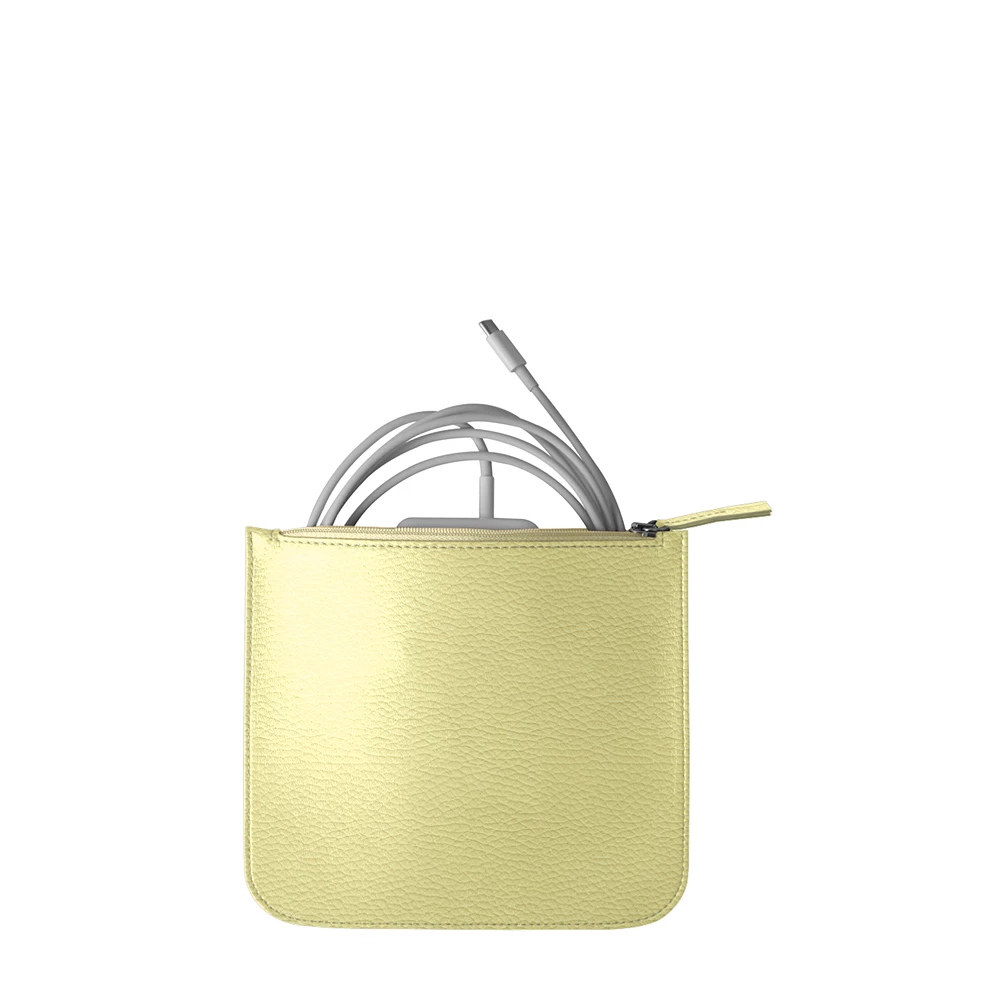 Pouch for Apple charger Pastel Yellow  - Pebbled Leather