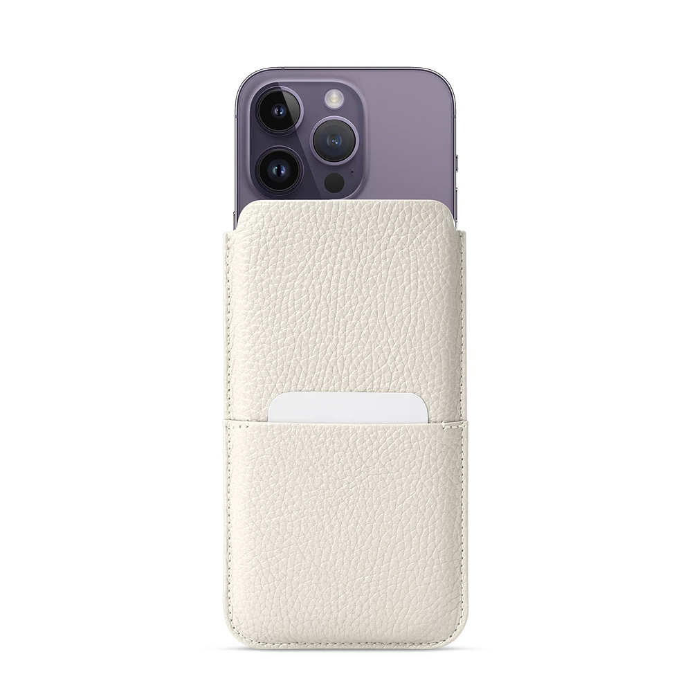 Pouch with Pocket - iPhone 14 Pro Off-White  - Pebbled Leather