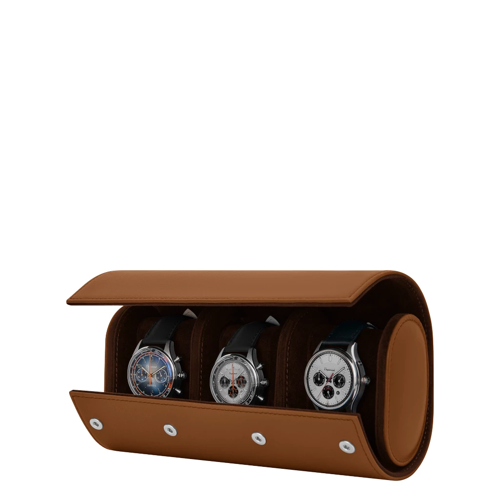 This is surely the most elegant leather watch case available right now. Designed in premium leather, it protects and carries your favourite watches, specially when you are travelling. Created with a rigid feel, this leather watch holder comes with a high-end microfibre lining that makes sure that your watches remain as new. There are 3 cushions inside for 3 watches, and they can be removed from the watch roll for easy storage. Wrap your watch around the cushions and place them all in the watch case again with the help of 4 snap buttons on the sides. Choose among sumptuous leathers, colours and customising options for an absolutely unique watch case for men. This watch organiser is arguably the best choice for watch lovers or collectors