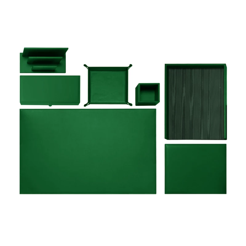 The leather Presidential desk set by Lucrin consists of 7 luxury leather office items that definitely add a sure touch of class and elegance to your office. This collection of desk accessories has been combined according to the demands and needs of professionals and our office products clients. Our best artisans have been striving to conceive a desk set that would not only suit your tastes but that would also provide a more comfortable working environment. For instance, the letters holder will allow you to tidy up and classify your envelopes easily.