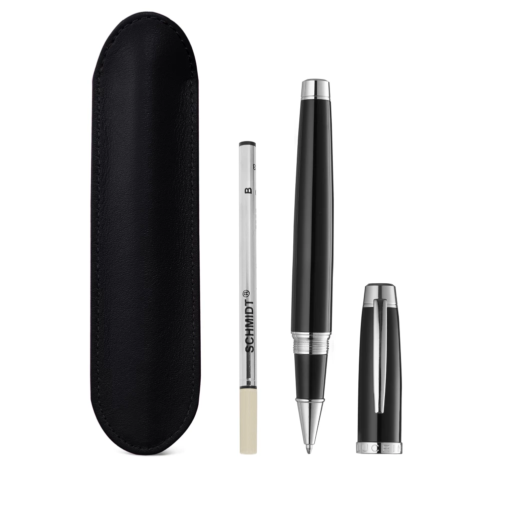 LUCRIN Rollerball Pen is made for those who still believe in the power of the written word. Designed for professionals, creatives and thoughtful note-takers, this rollerball pen brings ease and intention to every page. Its Maxi format offers a balanced grip, making it comfortable for extended writing, whether during meetings, journaling or correspondence. Finished with silver-colored trim, the easy-flowing nib delivers smooth, precise lines, while quick-drying black ink keeps your writing clean and controlled. The pen is delivered in its own leather case, personalized with your initials, turning a daily essential into a signature piece. Rediscover the pleasure of writing with the LUCRIN Rollerball Pen.