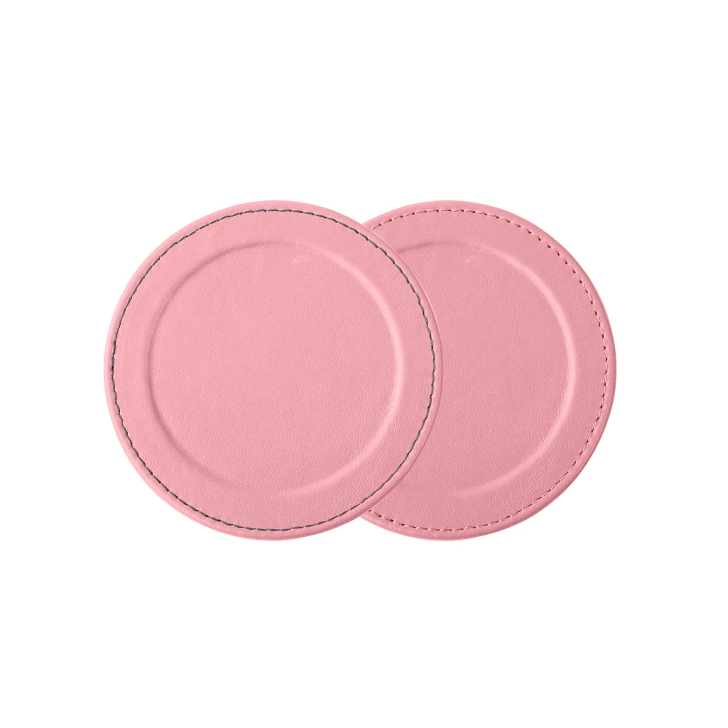 Round Coaster with Rim - Pair Pink  - Smooth Leather