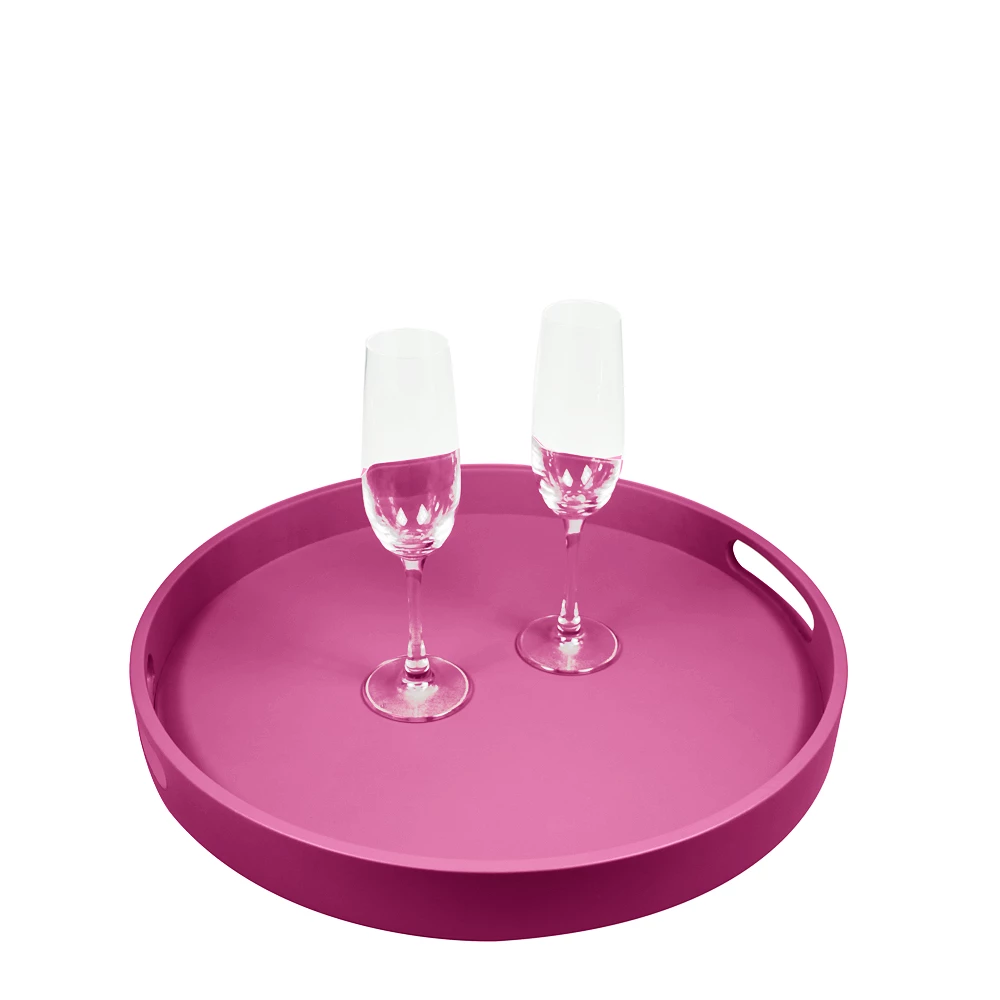 • Round service tray - Fuchsia  - Smooth Leather