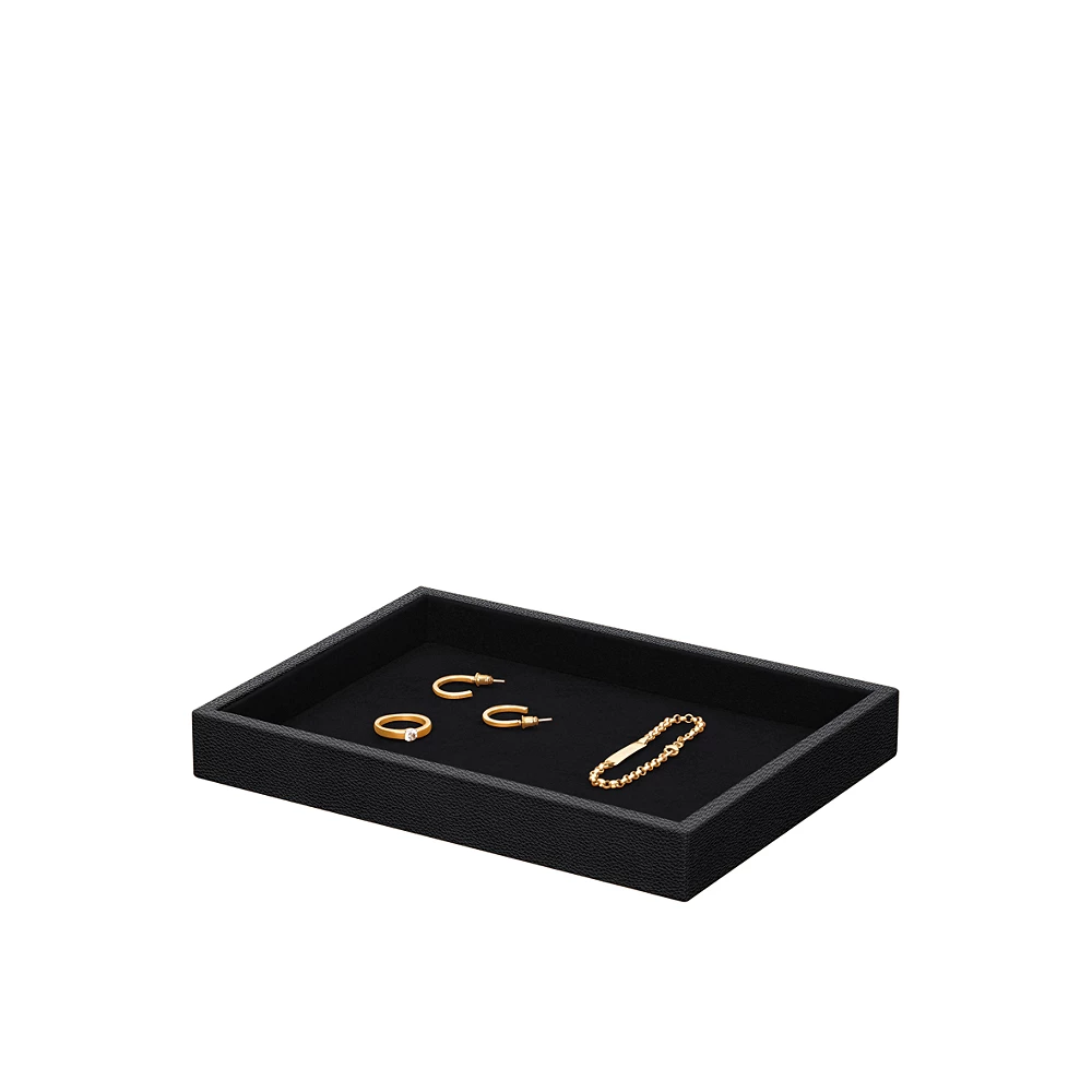 This jewelry leather tray is ideal for safes, especially those found in luxurious hotels. Clients may place their jewelries (rings, bracelets, necklaces …) or watch in this leather tray before putting it in the safe.