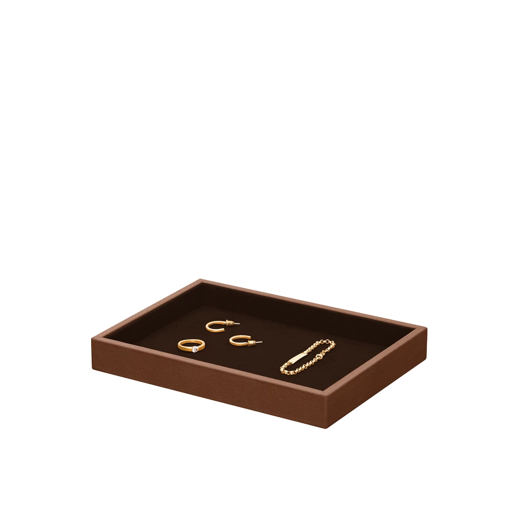 This jewelry leather tray is ideal for safes, especially those found in luxurious hotels. Clients may place their jewelries (rings, bracelets, necklaces …) or watch in this leather tray before putting it in the safe.