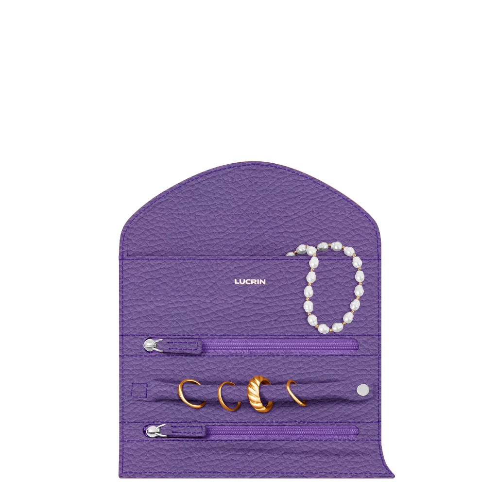 Organize and carry your jewelry discreetly and stylishly with this travel jewelry roll. This jewelry and watch roll is crafted from genuine leather. Two zipped flat pockets keep your bracelets or other chains safe and secure. A padded cylinder, which is attached on one side and closes with a snap button closure on the other, keeps your rings organized. Lastly, a large flat interior pocket can be used to hold a necklace. A beautiful gift to customize for the special woman in your life.