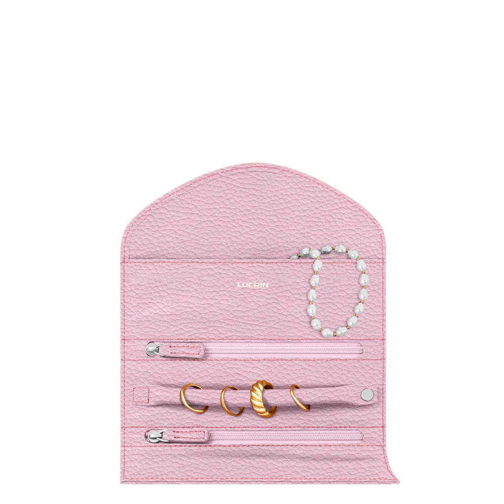 Jewelry Pouch with Snap Closure Pink  - Pebbled Leather