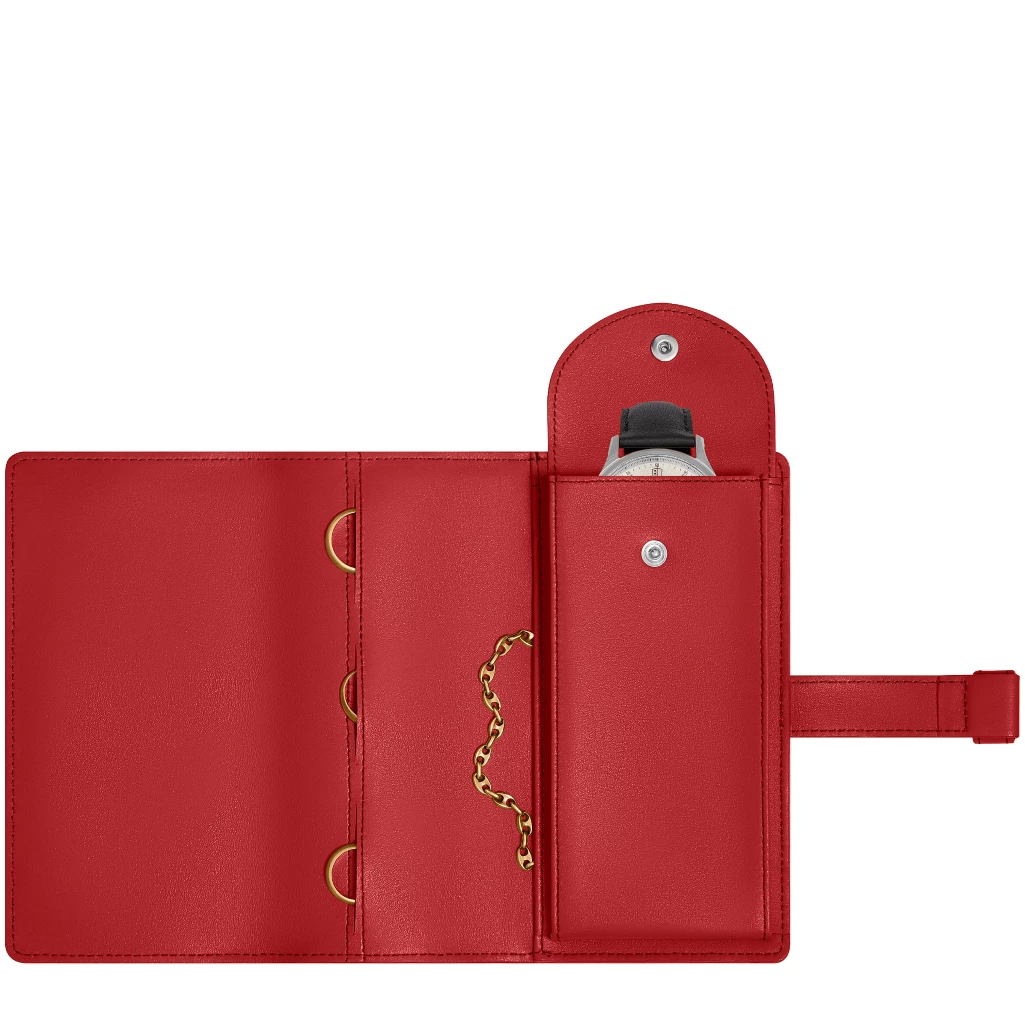 Watch and Jewelry Pouch Red  - Smooth Leather